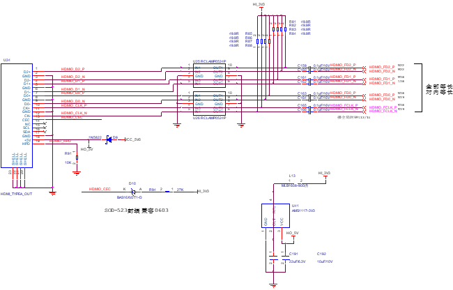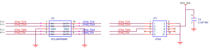 开发平台焊接有一个40PIN的CEP连接器,可用于各低速功能验证开发,接入3V3及5V电源通过电阻可选。