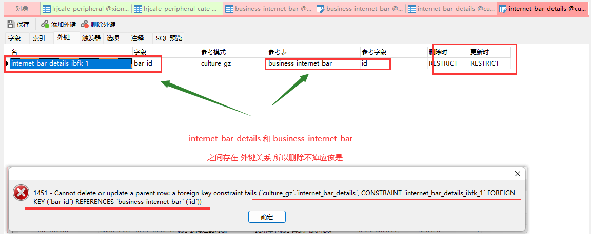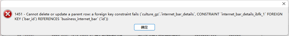 > 1451 - Cannot delete or update a parent row: a foreign key constraint fails (`culture_gz`.`internet_bar_details`, CONSTRAINT `internet_bar_details_ibfk_1` FOREIGN KEY (`bar_id`) REFERENCES `business_internet_bar` (`id`))