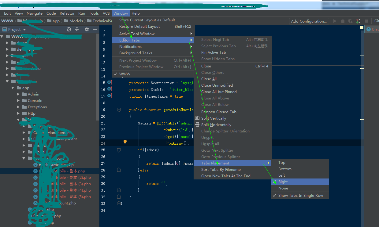 开启PHPstorm右侧边栏的方法: 一般phpstorm默认只能打开10个文件,超过就隐藏了,想要打开更多: