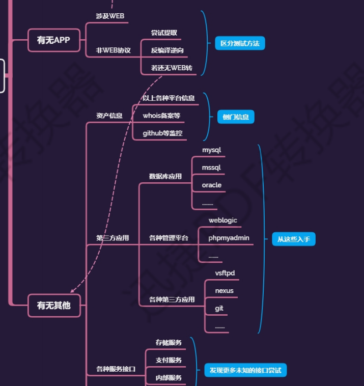 第二步:确定有无APP,若APP或无APP涉及到WEB,则直接跳转到第一步。无网站,则尝试提取网站,若还是无法找到,则进行反编译逆向,若还无,则跳转到第三步