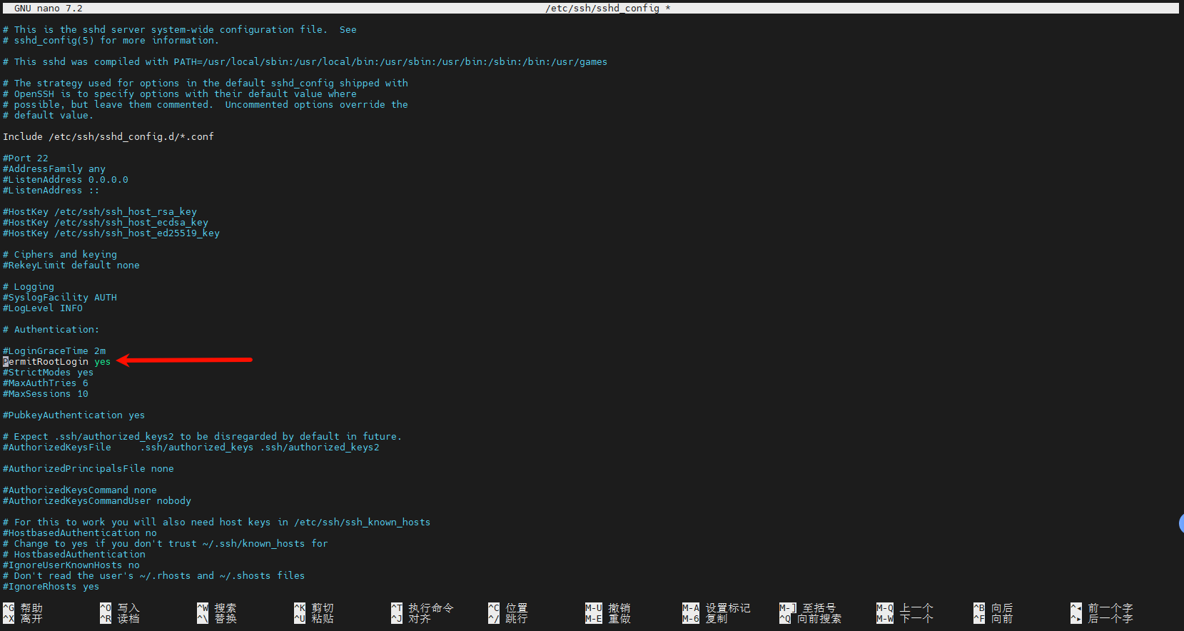 将PermitRootLogin prohibit-password修改为PermitRootLogin yes后保存