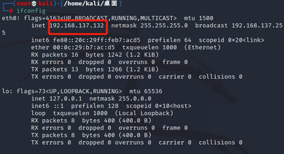 1.查看kaliIP地址 ifconfig