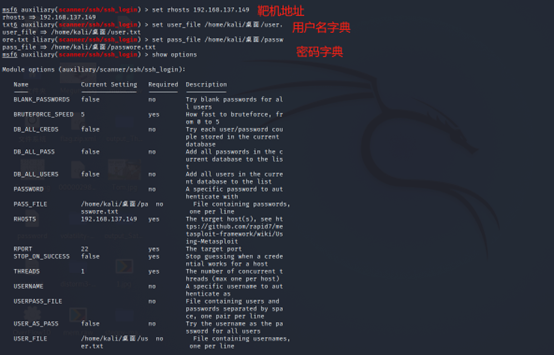 因为开放了22端口,利用msfconsole进行ssh爆破