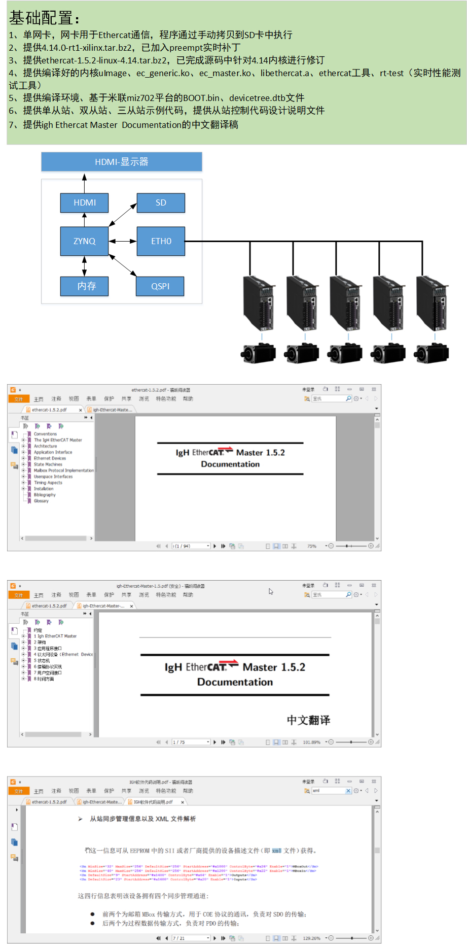 igh EtherCAT主站是一种用于实时通信的技术,它可以与Zynq平台上的igh EtherCAT 1.5.2进行集成。这个系统使用了Xenomai Linux RT Preempt内核,它具有低资源占用的特点。为了方便用户使用,我们提供了丰富的资源,包括源码、文档和示例代码,以减少用户的摸索时间。如果您使用的是非米联MIZ702开发板,请在购买前与我们联系。