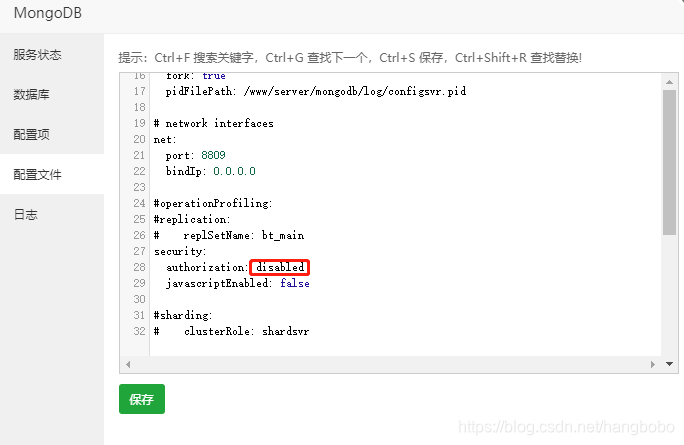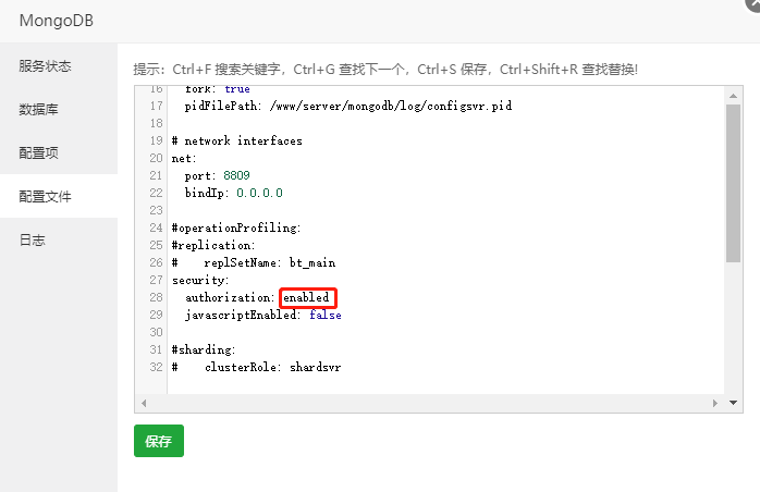 9、修改配置项 authorization: enabled 授权远程登录