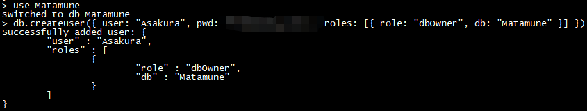 db.createUser({ user: "admin", pwd: "password", roles: [{ role: "userAdminAnyDatabase", db: "admin" }] })
