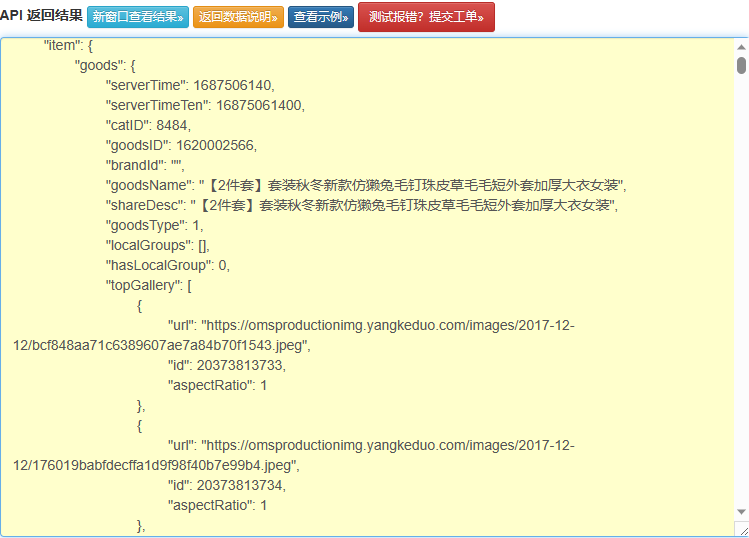 【电商平台拼多多api接口】根据ID获取商品详情原数据API返回值说明