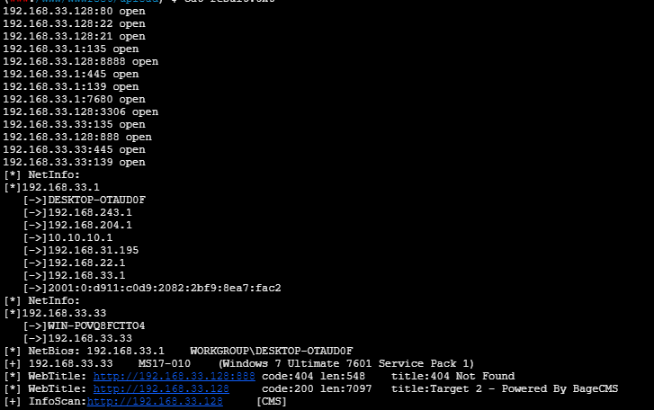 发现存活主机192.168.33.33,win7,可能存在ms17-010