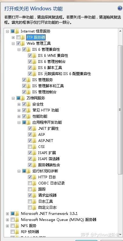 这个我相信大家都会了,控制面板---程序和功能-----打开或关闭Windows功能,如图: