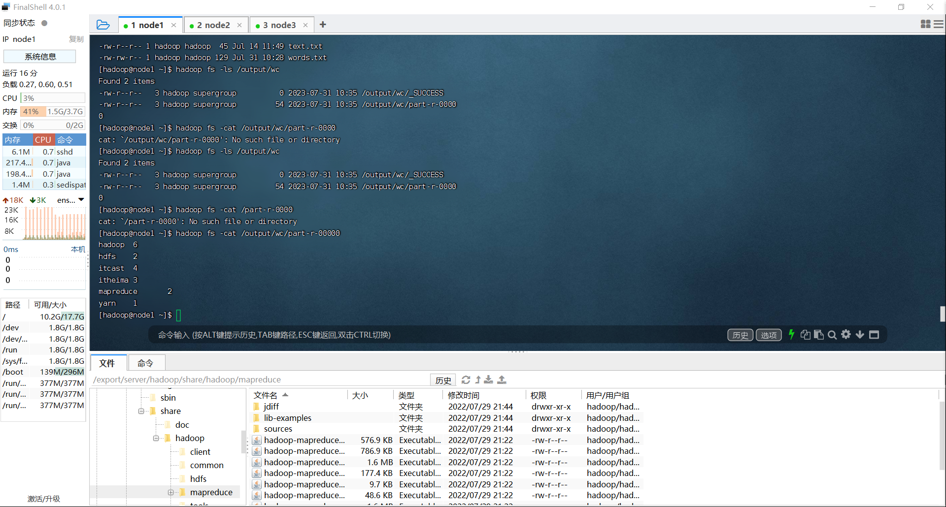 • 提交 MapReduce 程序运行并收集执行结果