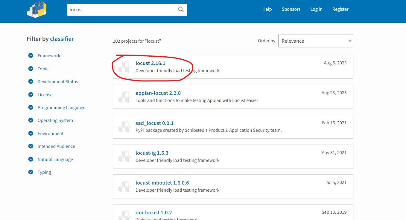打开网址搜索需要下载的三方库的安装包,我是以“locust”为例