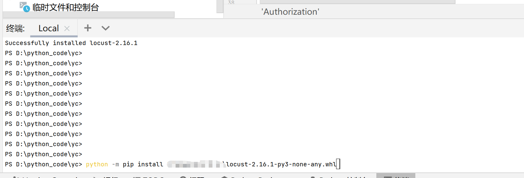 终端执行命令:python -m pip install *******\locust-2.16.1-py3-none-any.whl (****是文件路径)
