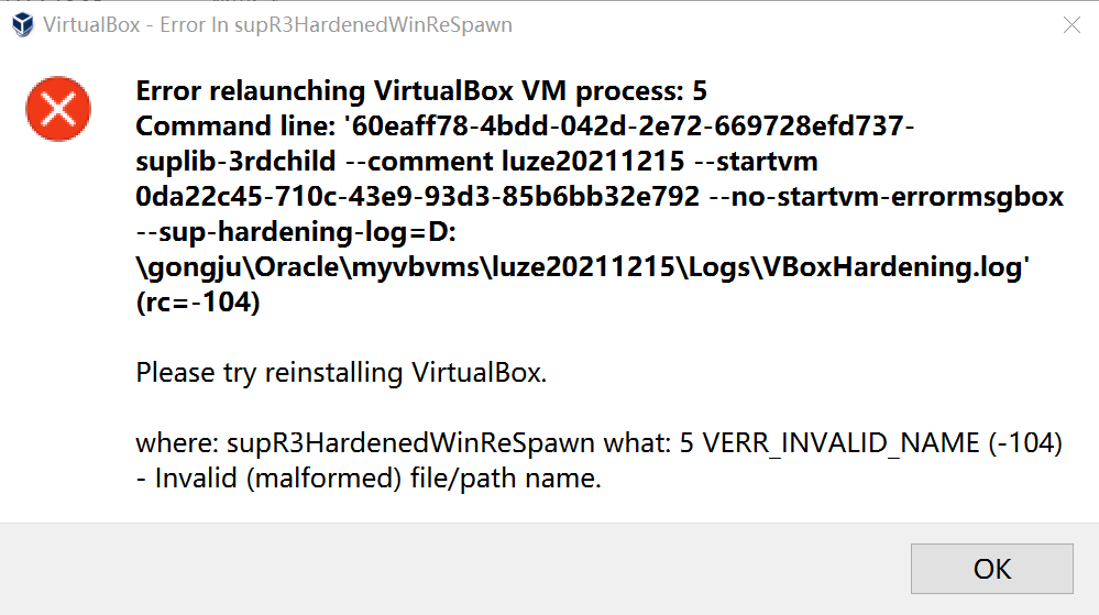 3.2 VirtualBox报错Error relaunching VirtualBox VM progress:5