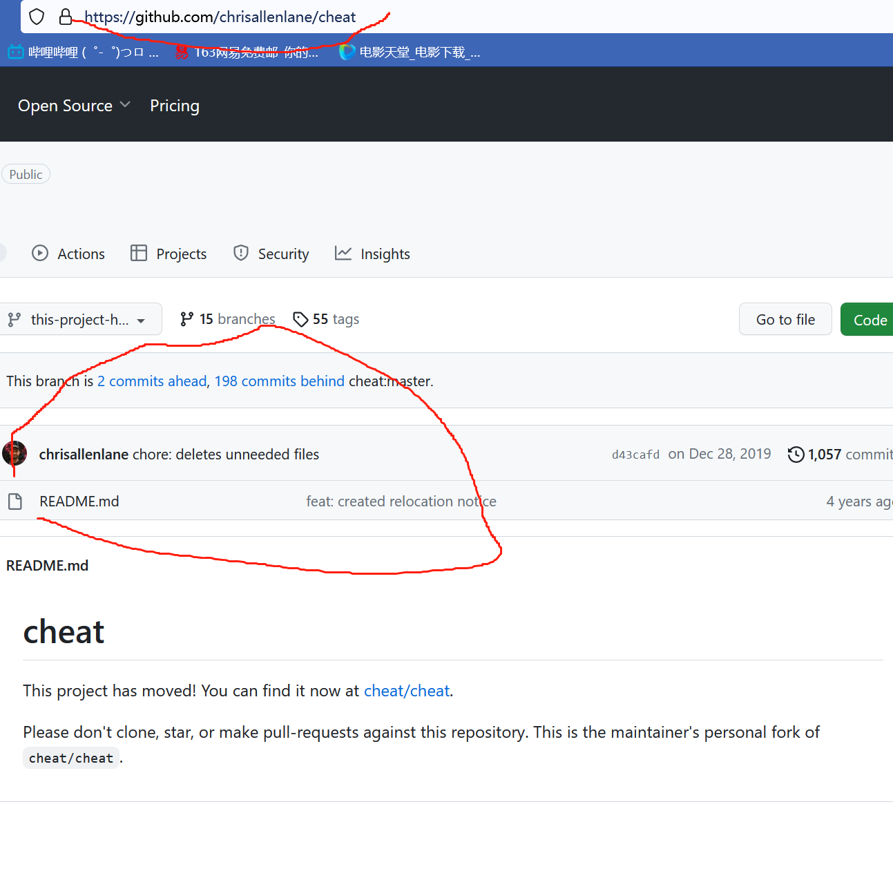 当我按照老师博客上的步骤一步一步来的时候,我发现从GitHub上把cheat克隆下来的东西安装不了。然后我打开下载的cheat目录发现就一个readme文件,直接给我整不会了。