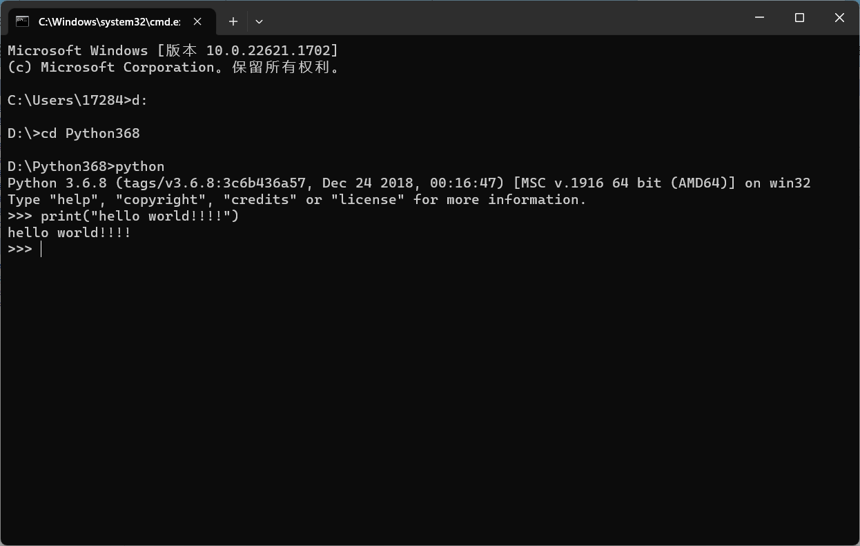 - 1、在没有配置环境变量的前提先进入到“cmd”更改到Python解释器安装路径