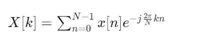 离散傅里叶变换将离散时间信号 x[n] 转换为频域表示 X[k]: