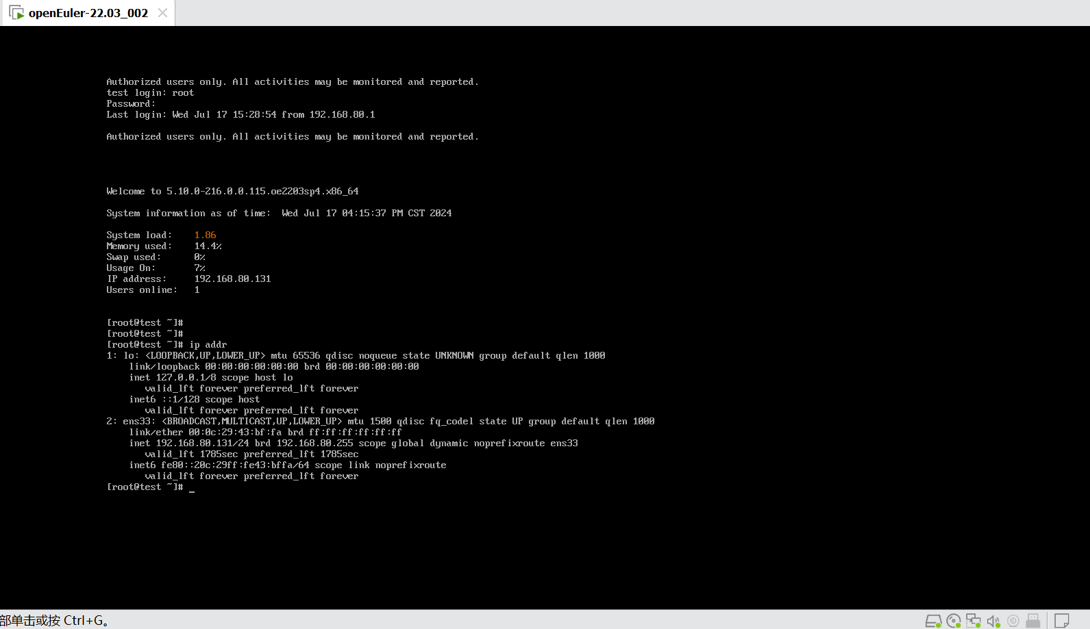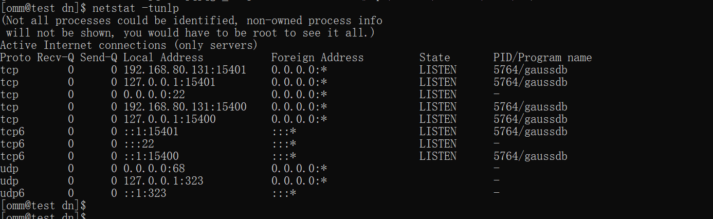 [omm@test ~]$ ls -lh /opt/huawei/ total 12K drwxrwxr-x 2 omm dbgrp 4.0K Jul 17 15:32 corefile drwxrwxr-x 5 omm dbgrp 4.0K Jul 17 15:39 install drwx------ 2 omm dbgrp 4.0K Jul 17 15:41 tmp [omm@test ~]$ gs_om -t status ----------------------------------------------------------------------- cluster_name : dbCluster cluster_state : Normal redistributing : No ----------------------------------------------------------------------- [omm@test ~]$ gsql -d postgres -p 15400 gsql ((openGauss 5.0.2 build 48a25b11) compiled at 2024-05-14 10:26:01 commit 0 last mr ) Non-SSL connection (SSL connection is recommended when requiring high-security) Type "help" for help. openGauss=#