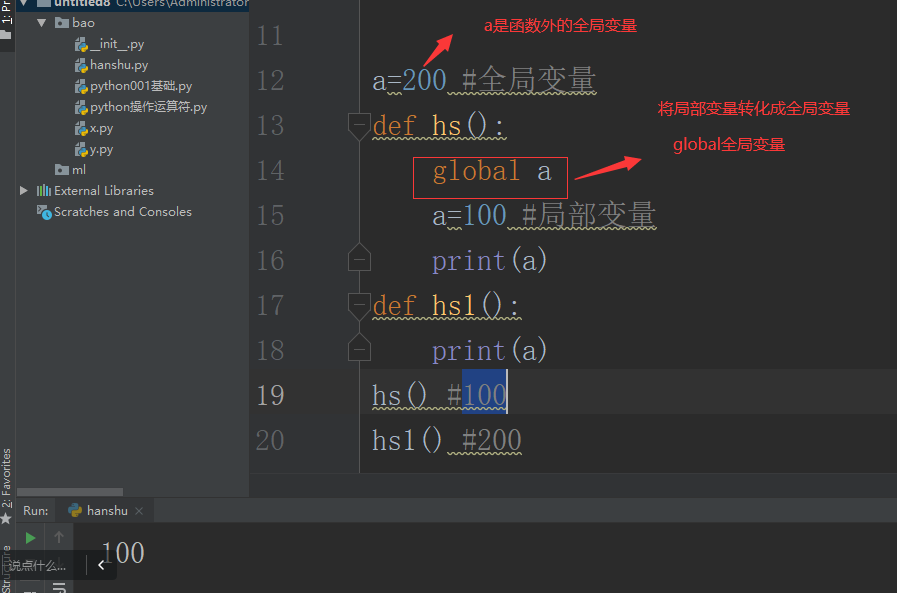 (5)局部变量、函数外全局变量、函数内global 全局变量