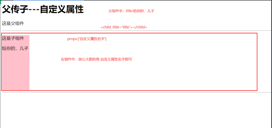 <child :mytitle="title" :aa="cc" :bb="true"></child>