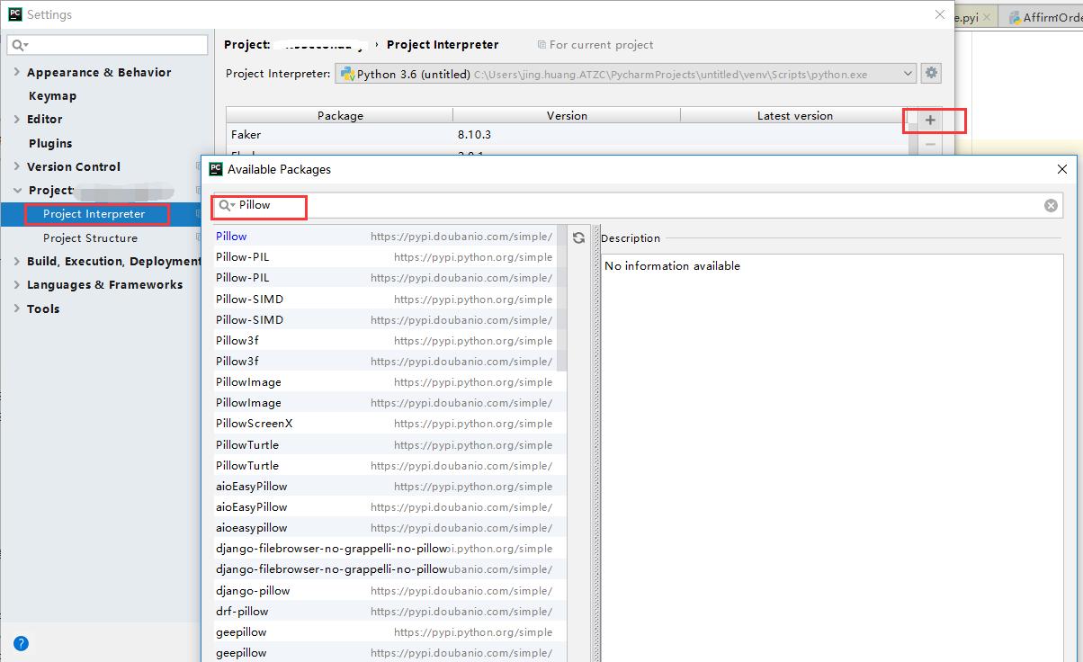 如果通过pycharm安装Pillow失败,返回超时,需要使用客户端来安装。如下2