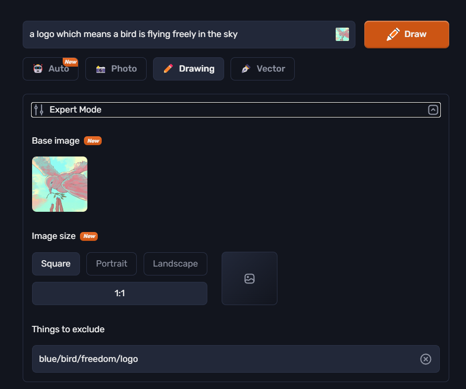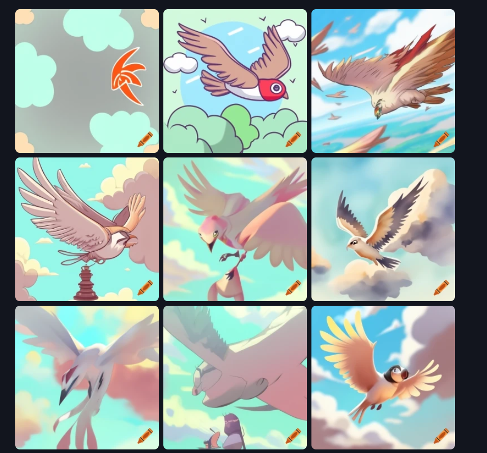 导入Artstaion上的插画作品,生成包含“鸟”、“自由”、“蓝色”、“飞翔”等属性的logo