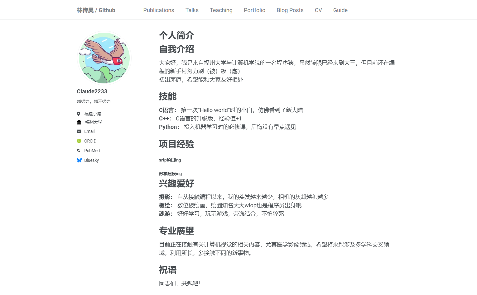 Github地址: https://clauede2233.github.io/Claude2233.github.io/