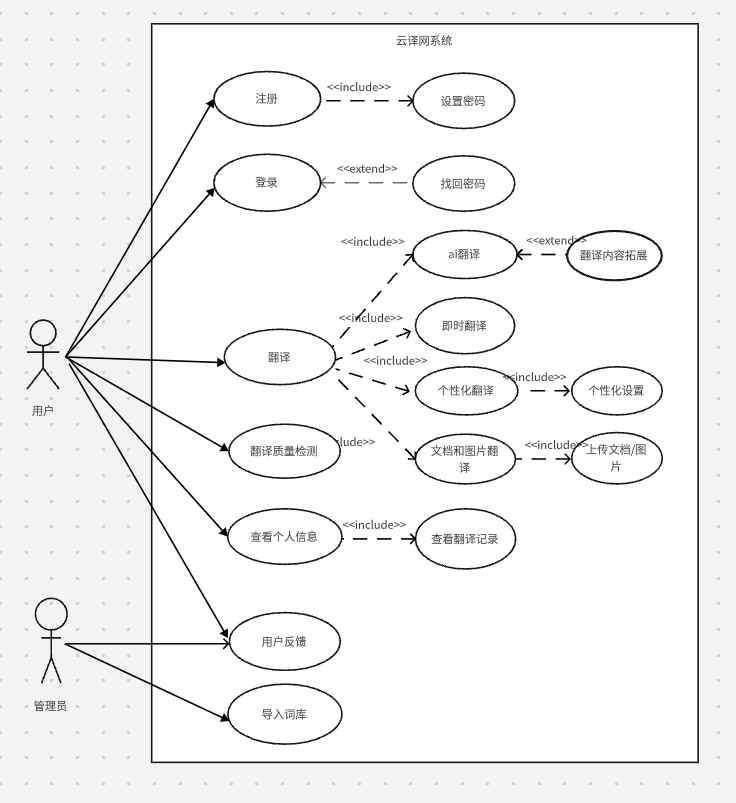 - 目标:明确系统的核心功能和架构设计,包括大语言模型的接入、翻译功能、润色功能等。