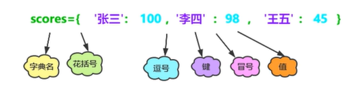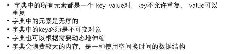 · 以键值对的方式存储数据,字典是一个无序的序列